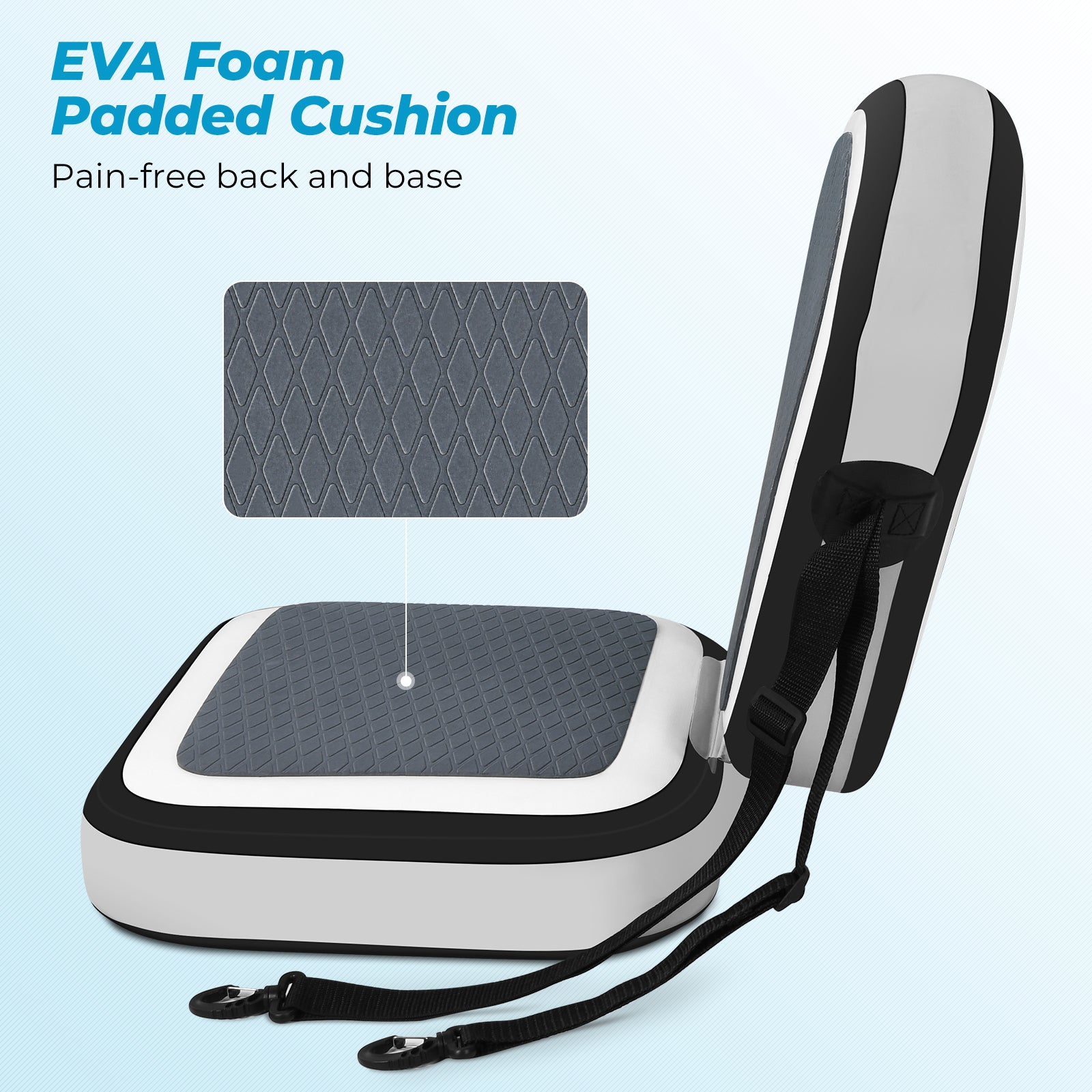 - 4 inches of cushioning! Our seat provides better back support to give you the optimal paddling position. Sitting more than 4 inches above water level minimizes the possibility of you getting wet.