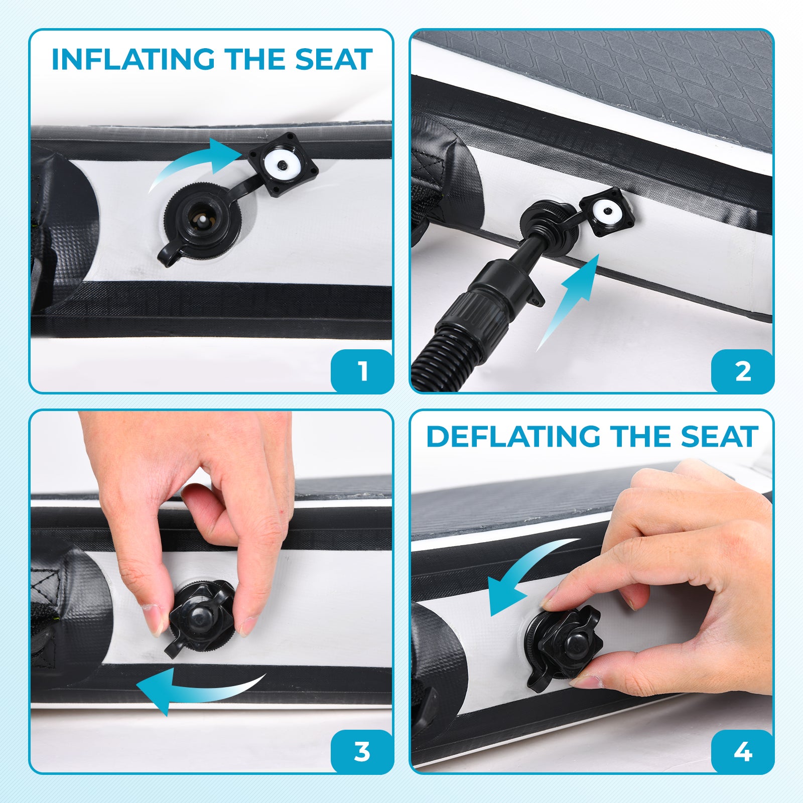 - Various systems compatible! Our seat will fit on most of your boats and sup boards, it doesn’t matter you are fishing or water sporting; this lightweight and easy-to-carry inflatable seat will be your ultimate companion